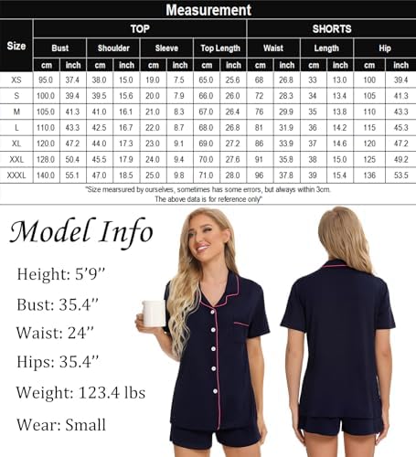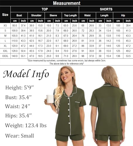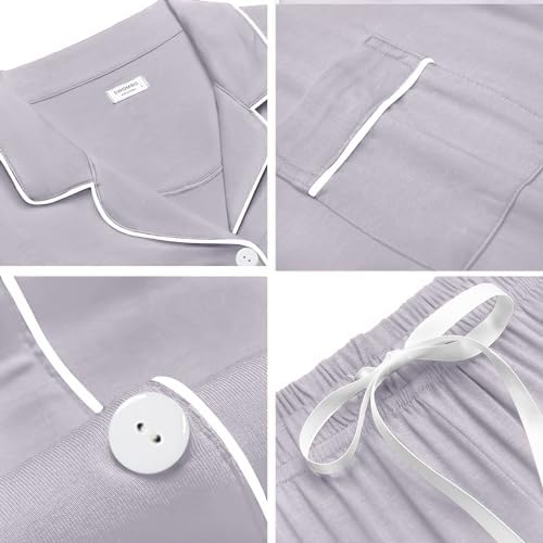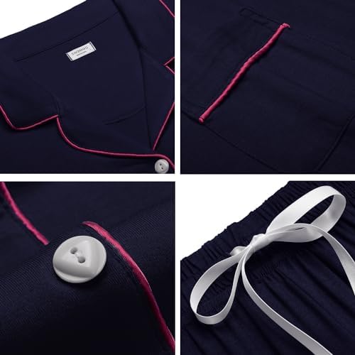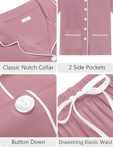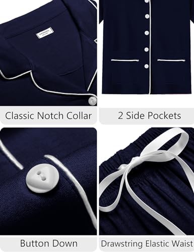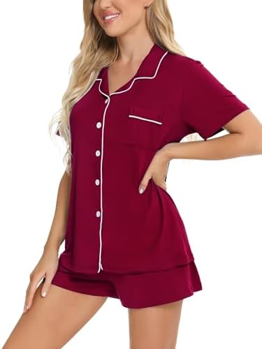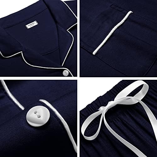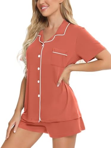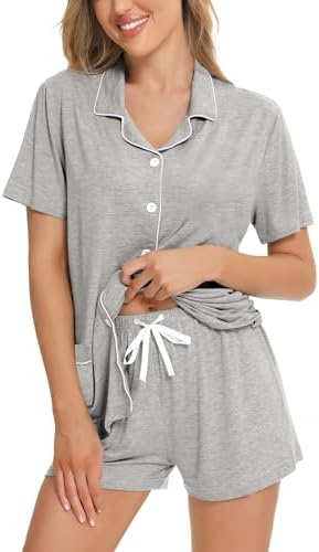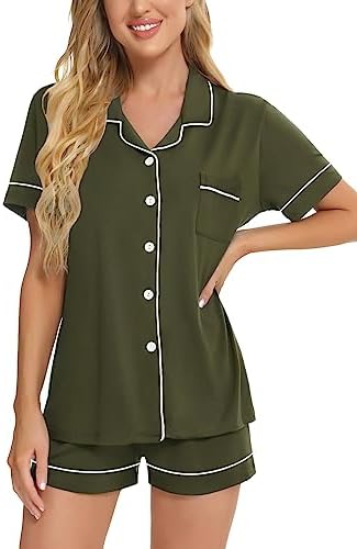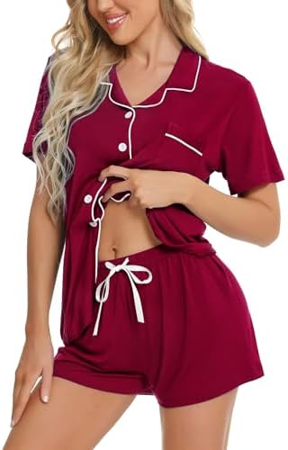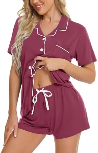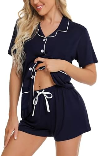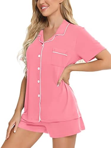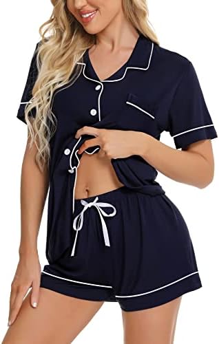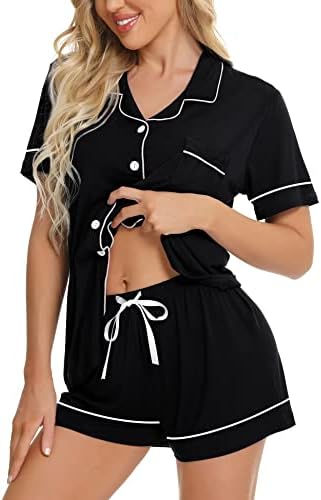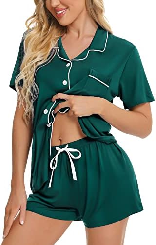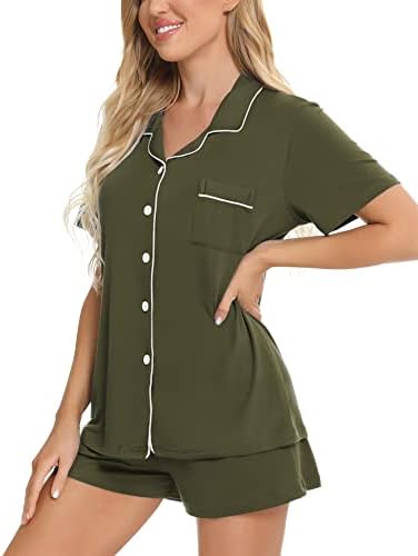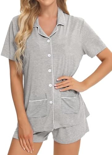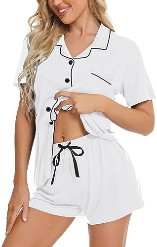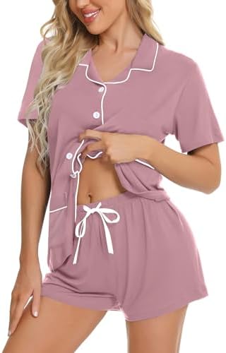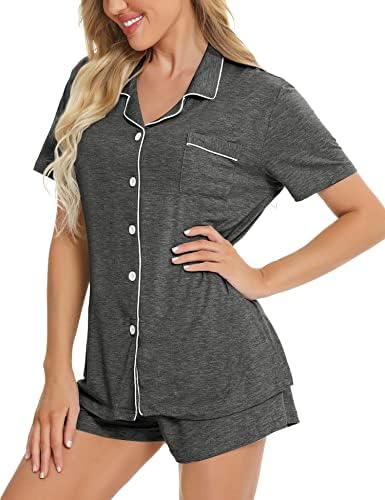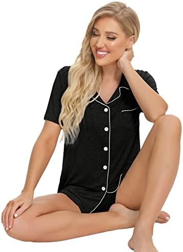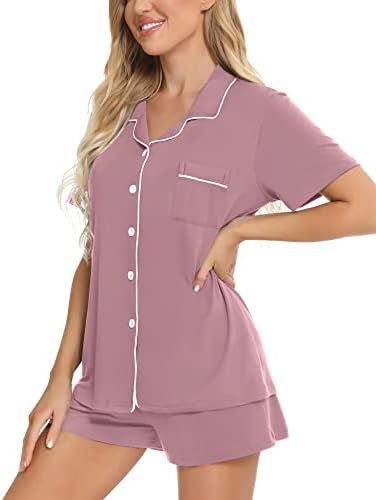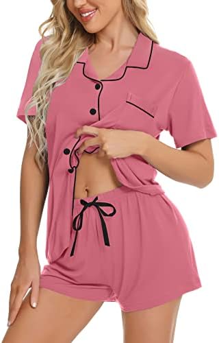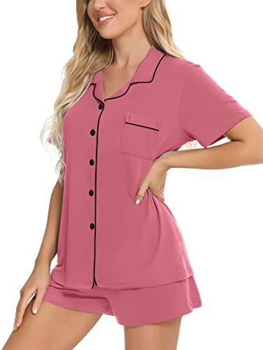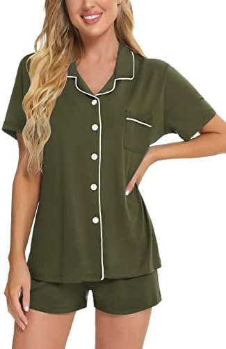 SWOMOG Sleepwear Womens Pajama Set Short Sleeve Pjs Button Down Nightwear Soft Loungewear