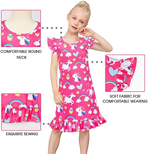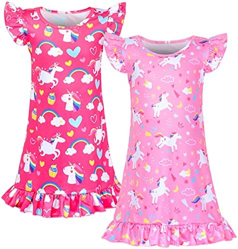 Sylfairy 2pcs Girls Nightgowns, Unicorn Nightgown Princess Pajama Dresses for Girls Sleepwear Nightie