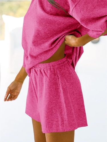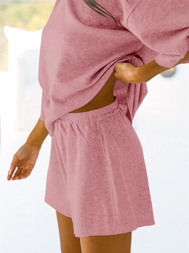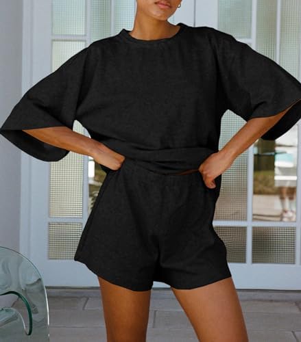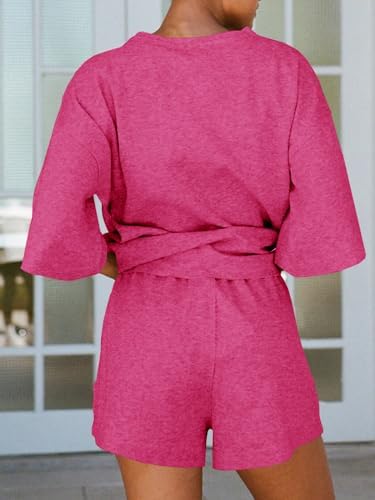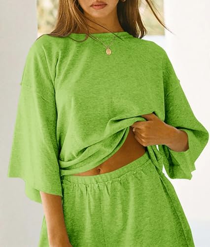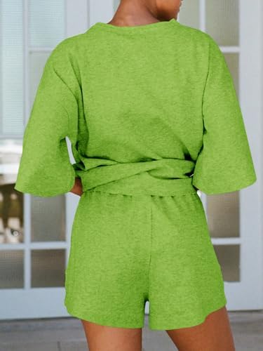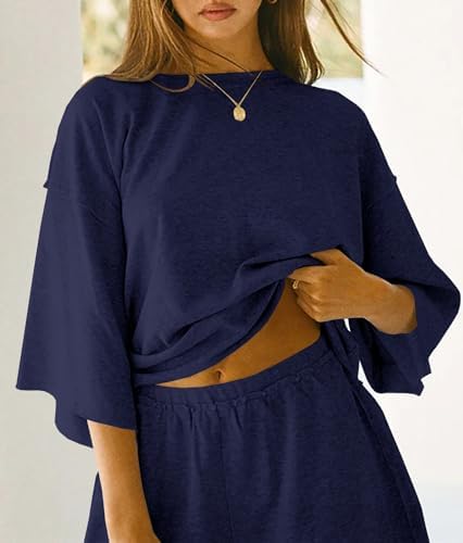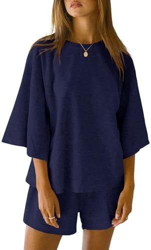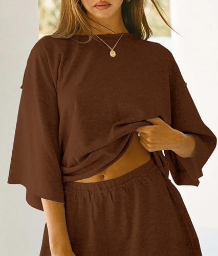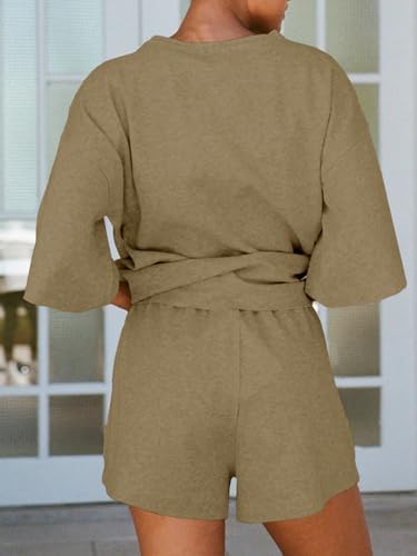 Tankaneo Womens 2 Piece Outfits 3/4 Sleeve Tops and Elastic Waist Shorts Lounge Sets Loungewear