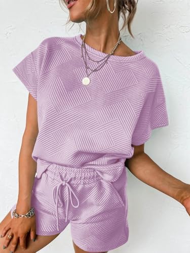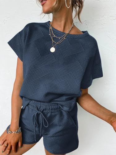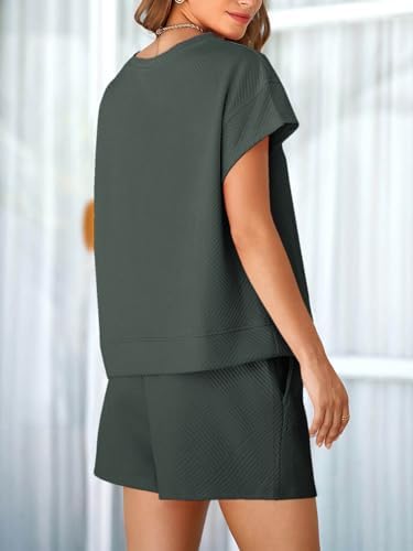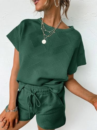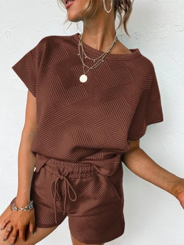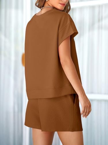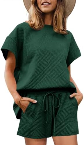 Tankaneo Womens Loungewear Set Short Sleeve Tops and Shorts 2 Piece Outfits Matching Lounge Pajama Set with Pockets