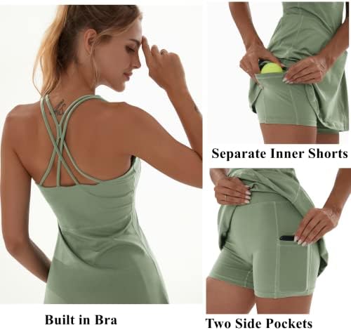 Tennis Dress for Women Workout Dress with Built-in Bra & Shorts Pockets Athletic Dress for Exercise Golf Dresses
