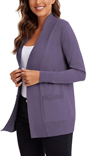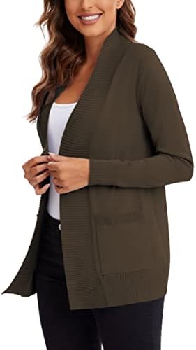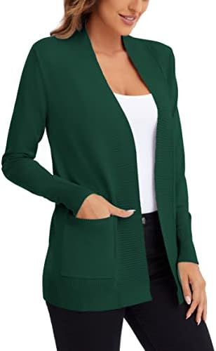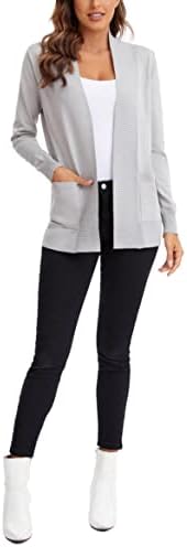 Urban CoCo Women's Lightweight Open Front Knit Cardigan Sweater Long Sleeve with Pocket