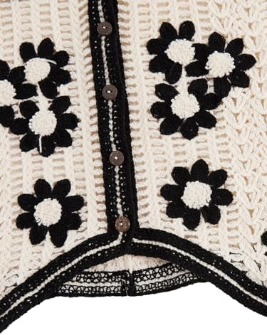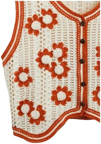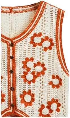 Verdusa Women's Button Front V Neck Sleeveless Floral Pattern Knit Sweater Vest