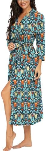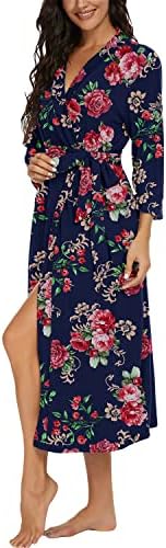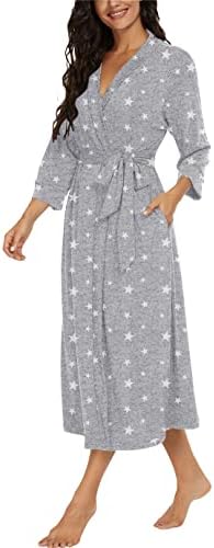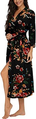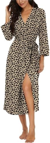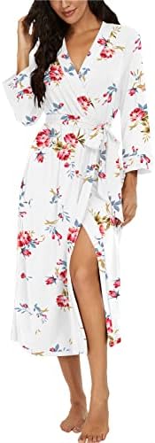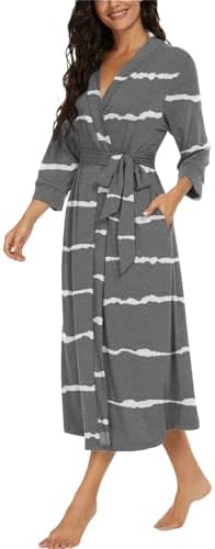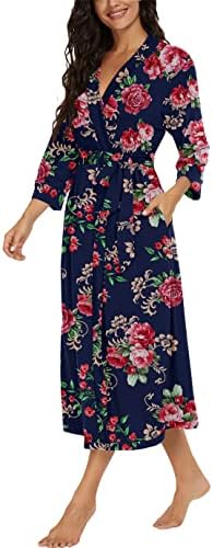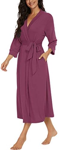 VINTATRE Women Kimono Robes Long Knit Bathrobe Lightweight Soft Knit Sleepwear V-neck Casual Ladies Loungewear