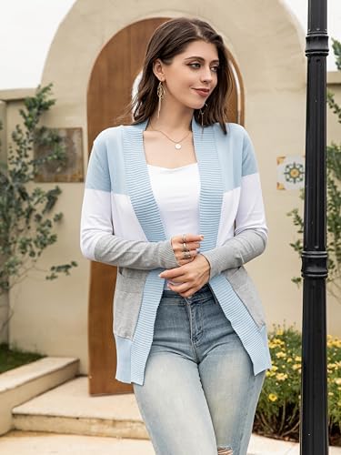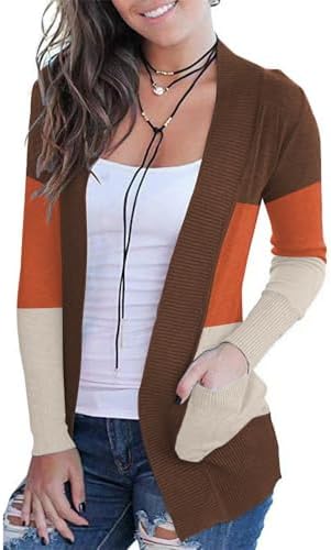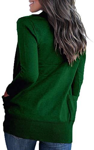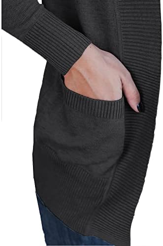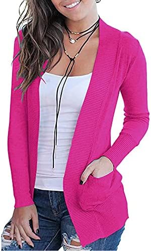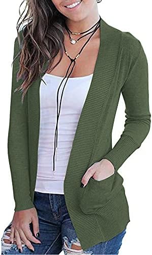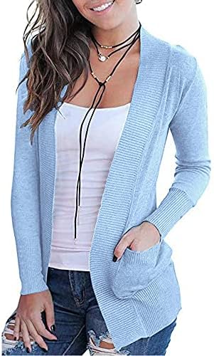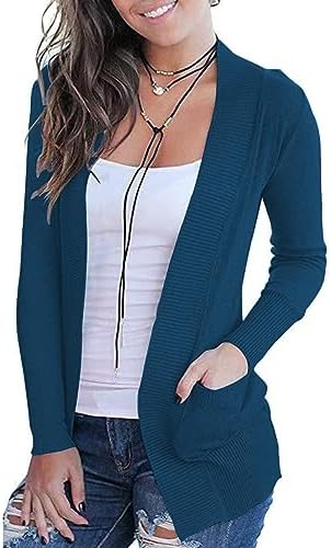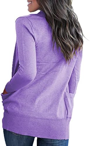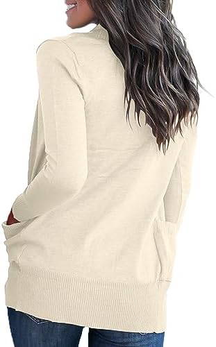 VOIANLIMO Women's Open Front Casual Long Sleeve Knit Classic Sweaters Cardigan with Pockets