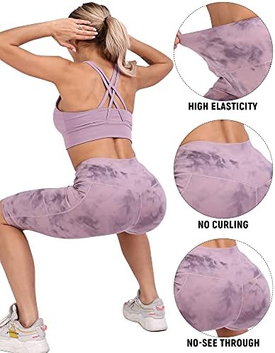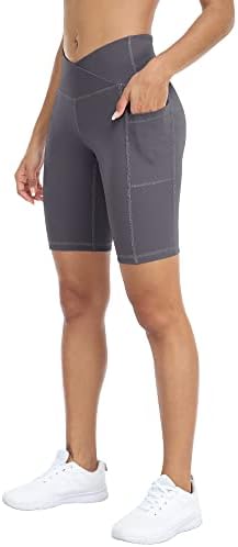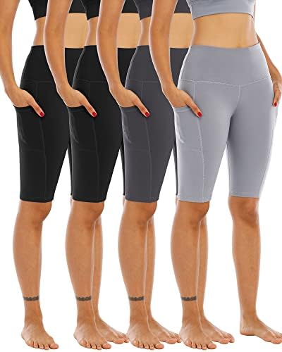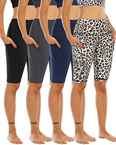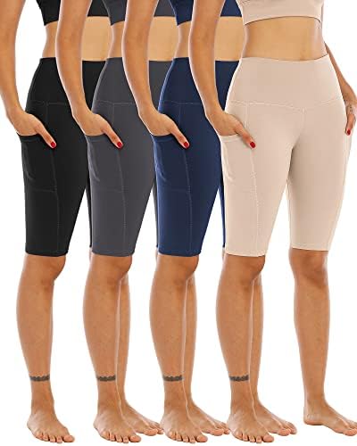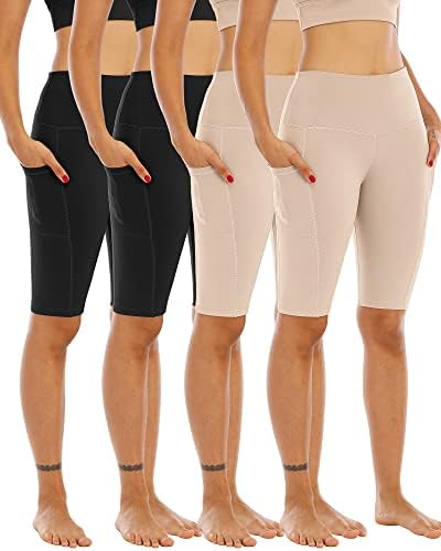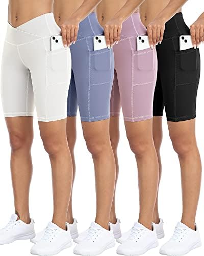 WHOUARE 4 Pack Biker Yoga Shorts with Pockets for Women,High Waisted Athletic Running Workout Gym Shorts Tummy Control
