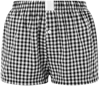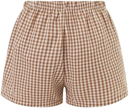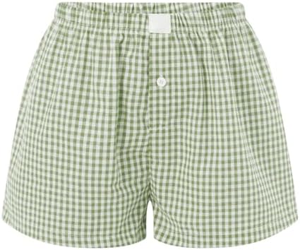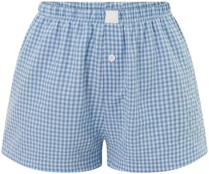 Women Pajamas Shorts Micro Boxer Shorts Y2K Cute Gingham Sleep Lounge Shorts Checkered Plaid Button Pj Mini Shorts