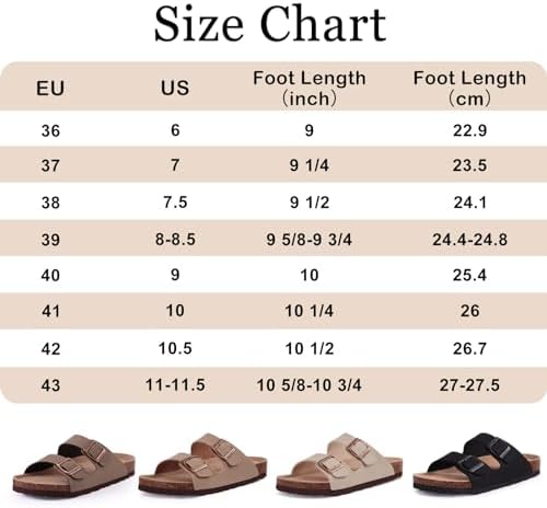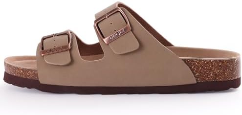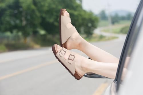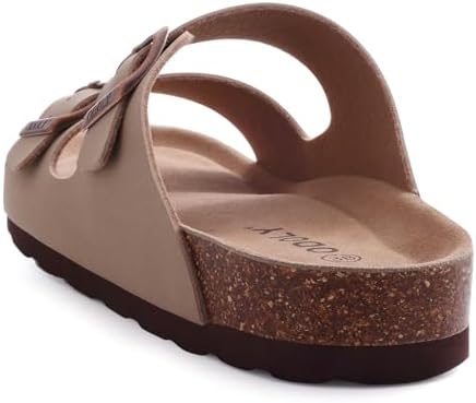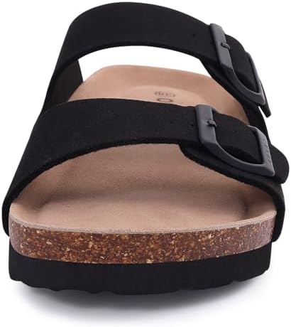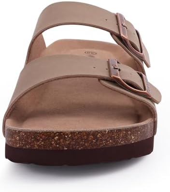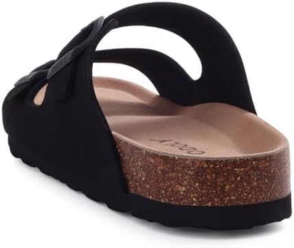 Women's Cork Footbed Slide Sandal, Comfortable Summer Beach Sandals with Adjustable Buckle