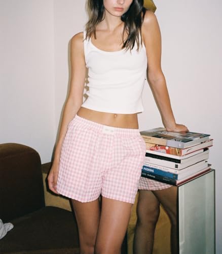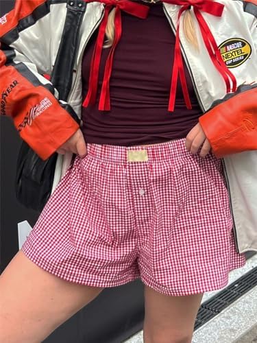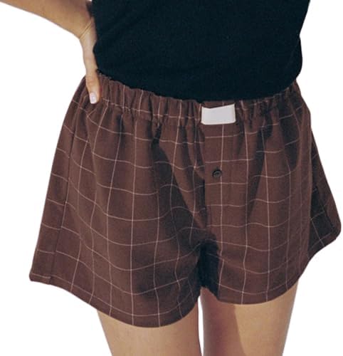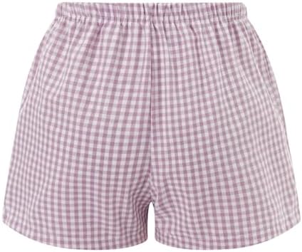 Women's Y2k Pajamas Shorts Cute Plaid Pj Short Pants Flannel Lounge Sleep Shorts Bottoms Elastic Waist Baggy Boxers