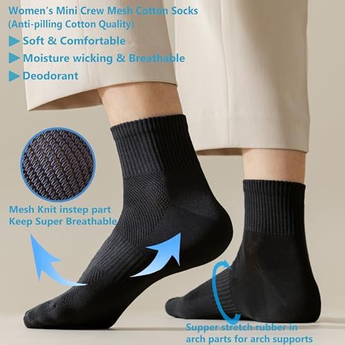 Womens Mini Crew Ankle Socks Pure Cotton Athletic Casual Socks for Women