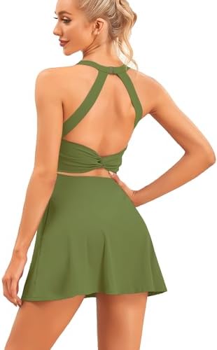 Womens Tennis Dress with Built in Shorts and Bra Workout Dress Golf Athletic Dress for Women