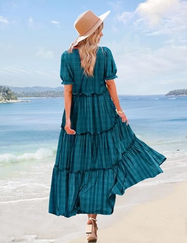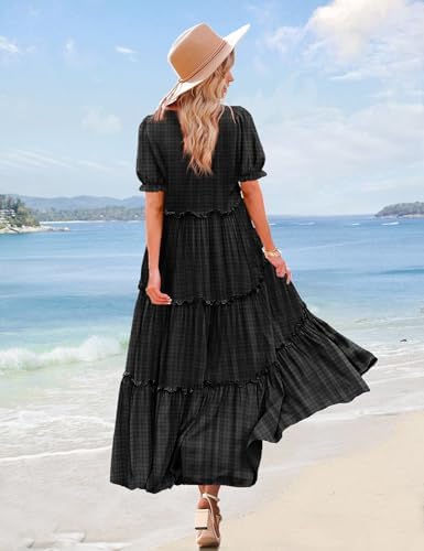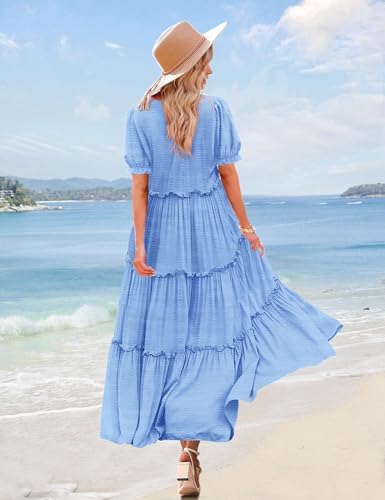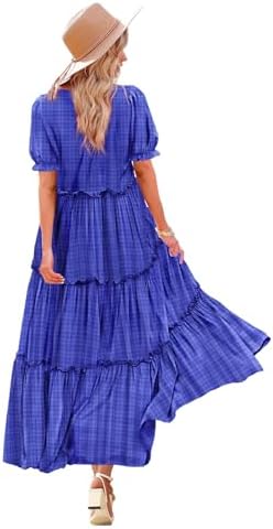 QACOHU Summer Dresses for Women V Neck Ruffle Short Sleeve Casual Shift Dress
