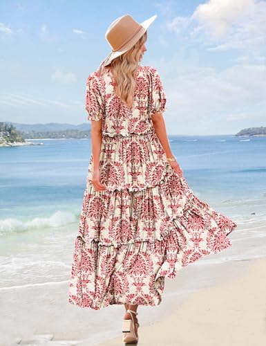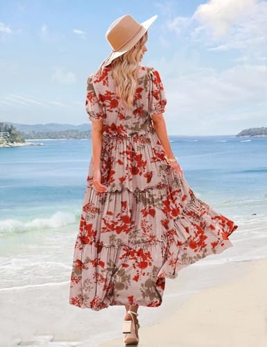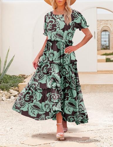 PRETTYGARDEN Womens Summer Wrap Maxi Dress Casual Boho Floral V Neck Short Sleeve Ruffle Hem Split Beach Long Dresses