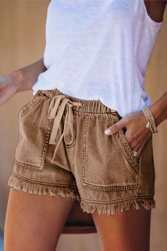 YOCUR Womens Lightweight Shorts Casual Baggy Trendy Short Pants Elastic Waist Drawstring Comfy Shorts