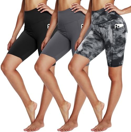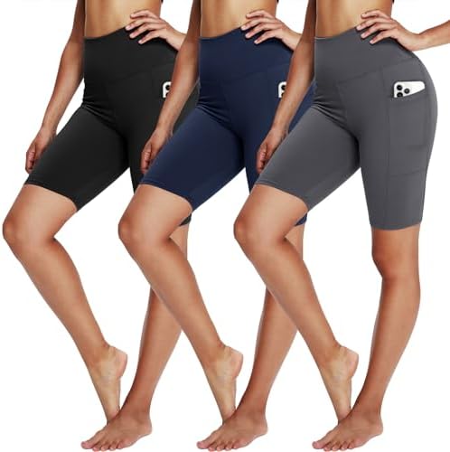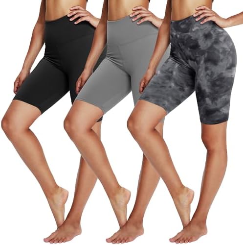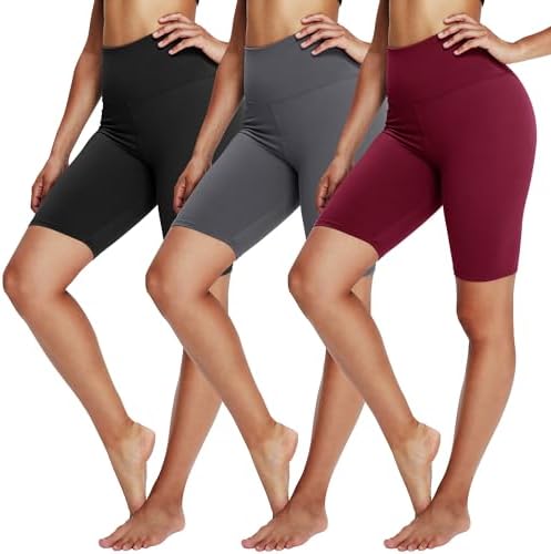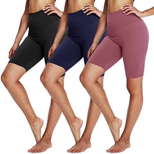 YOLIX 3 Pack Biker Shorts for Women – 8" Black High Waisted Workout Athletic Cheerleading Yoga Shorts
