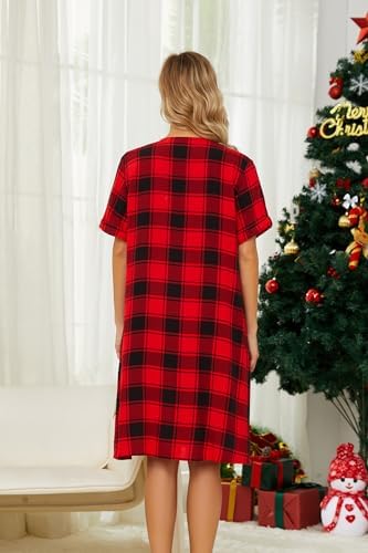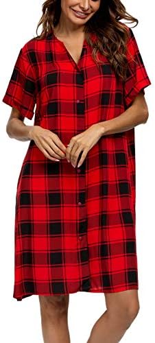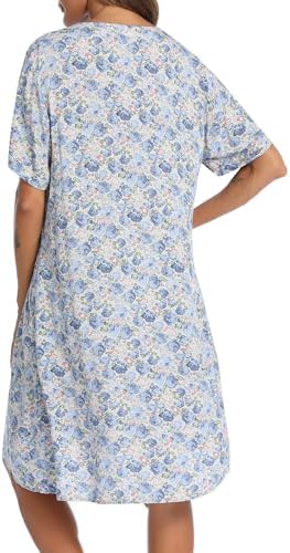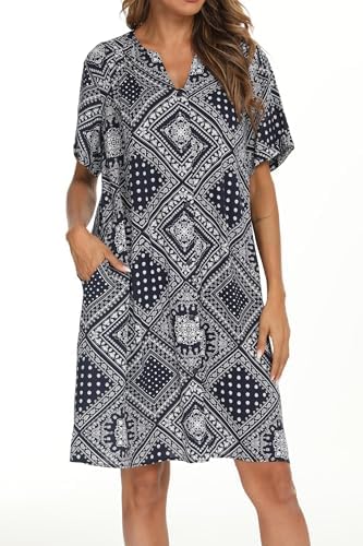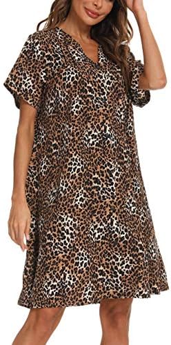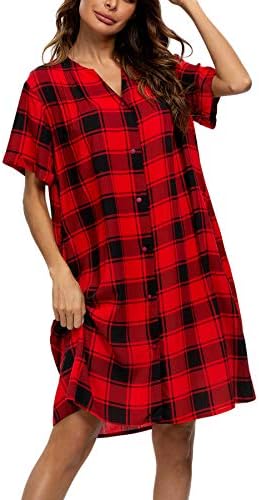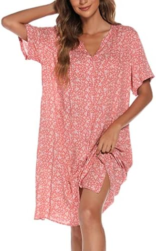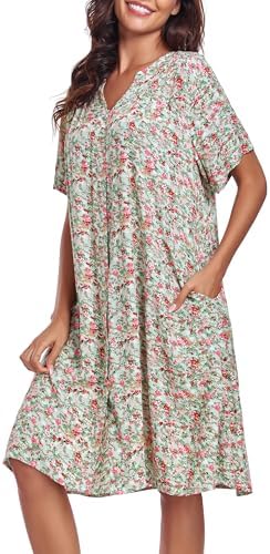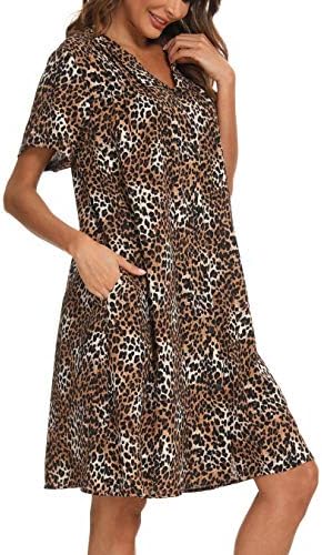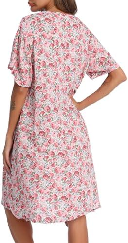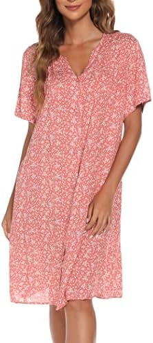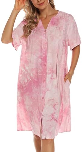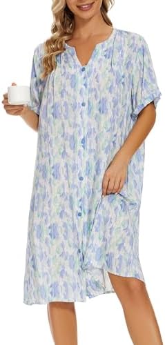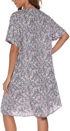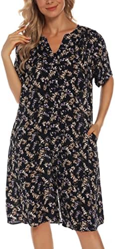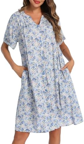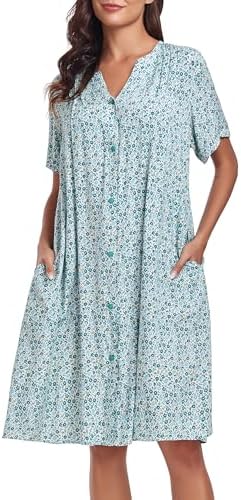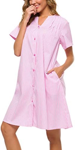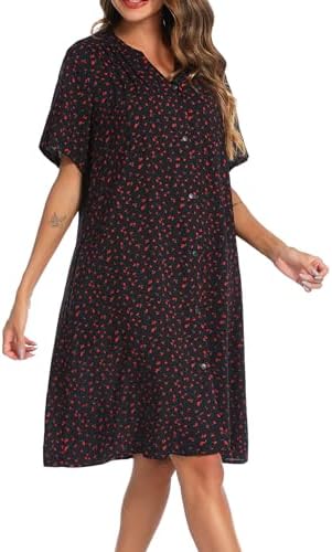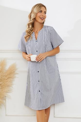 YOZLY House Dress Women Cotton Duster Robe Short Sleeve Housecoat Button Down Nightgown